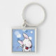 White Bull Terrier på Blue Dots Keychain Fyrkantig Silverfärgad Nyckelring