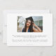 En elegant, könsneutral, studenten-fotoannonsering för att fira dem som får medicinska MD-examina. Med ett fullt-blekt foto på framsidan med överlagrad text och caduceus-symbolen (med "MD"-förkortningen) omgiven av en lagerkrans. Malltexten för student är helt och hållet anpassade, så teckensnittet storlekt, stil, färg och placering kan ändras. Baksidan har en andra mindre bild- och malltext för ett längre meddelande. Utformningen finns i andra färg, med en asclepius-symbol, med design för specifika kvalifikationer (RN, DO) och med olika layouter/orienteringar i min butik.