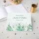 Den här gästen bok i bröllop har vita blommor och löv i vattenfärgen stil. Du kan anpassa den med bruden och brudgummen namn och bröllop på både framsidan och ryggraden. Den här gästen bok är en del av en samling som innehåller ett fullt av matchande bröllop-kontorsmaterial, t.ex. bröllopsinbjudningar, svarskort, informationskort, adressetiketter, porto frimärke, kuvert, favoritboxar, önskekort, program, menyer, möhippor och mycket annat. Besök insamlingssidorna i vår butik för att se det produktsortiment som du kan anpassa till bröllop.