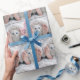A fluffy white cat with striking blue eyes is cozily nestled between a pair of human feet under a soft white blanket