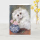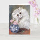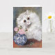 Ett tomt hälsningskort med den brittiske konstnären Louis Wain (1860-1939), White Cat. En underbar porträtt av en vit persisk katt bredvid ett blått och vitt porslin vas med rosa ros. Vain var känt för hans stora ögonögonåiga kattillustrationer.