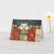 White Cat Peeking over Christmas Gifts Greeting Kort