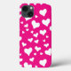 Telefonfodral i mönster av spridd, kritsketcheffekt, vita hjärtan, på djup fuchsisk rosa