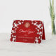 Kinesiska bröllop tackar dig med ett lyckokort för guld dubbla och vita körsbärssymboler på en strålande röd bakgrund. Namn i form av en elegant.