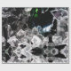PLDesign är ett magiskt foto av vackra, genomskinliga, vita och svarta kristallstenar med en antydan av grönt som ser ut som om de komar från svart utrymme.
