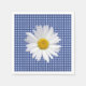 Vit sommar-daisy på vit och blå gingham-bakgrund. Bakgrunden kan ändras.