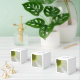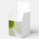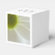 Anpassa söt White Daisy Wedding Favor Box med namnen för briden och brudgummen och ceremonin i giftermål. De här elegant-anpassningsbarna, botaniska bröllopsboxar, innehåller ett blommigt foto av vita blommar för blommor av daisy med en grönt gult center. Perfekt för ett klassvitt blomsterämne eller daisy party, dusch eller bröllop.