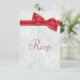 Platta kort för elegant OSA för Bröllop, babyskor osv. tryckta på inbjudan pappert. Vackrik vit dammmönsterbakgrund med ornerade snurrar och blommor och en söt, snyggt, söt, gigantisk röd båge och en bild av band. Dessa glamorösa, chic, klassi-svps är vackert sofistikerade och dekoreras/trycks på båda sidor. Jag har matchande inbjudningar till bröllop och babydusch och andra matchande produkter i min butik. OBSERVERA: All inbjudan på Zazzle har platt tryckt bilder. Bows och rosett band bilder köps från digital design för elena. Om du behöver hjälp med att anpassa din produkt kontaktar du mig genom min butik och jag kommer att vara lycklig för att hjälpa till.