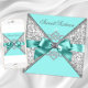 Vacker vita diamanter och tealblå med silvergrå damast sweet 16 födelsedagsfest inbjudan. Lägg till dina detaljer på framsidan och baksidan av denna eleganta tealblå födelsedagsfest inbjudan genom att lägga till dina evenemangsuppgifter, typsnitt, teckenstorlek & färg, och formulering.