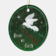 Anpassa den vackra julprydnaden! En Serene White Dove som flyger mellan Stars som bär en Olive Gren med Flowing Red & Grönt Rosett band... som önskar alla..."Fred på jorden"! Detta är en originalkonstform av konstnären Kerry Miller."
