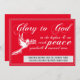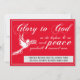 Röd och vit typografi med en julklapp från Gospelet Luke 2:14 och en bild av en fredsduva. Innehåller även anpassade 2-radiga hälsning vid grund i formgivningen. Luke 2:14 lyder: "Glory to God in the Top & on Earth peace, good towards manar." (Kung James Version.)