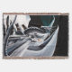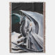 Vit kvinna med sin vita drake på den arktiska vintern med aurororna som dansar på natten himlar bakom dem.