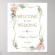 White Dusty Ro Blommigt Guld Greenery Bröllop Sign Poster
