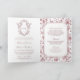 White Dusty Rose Chinoiserie Crest QR Code Wedding Inbjudan
