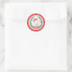 Den här söta vita elefantdekalen har en vattenfärgselefant som håller på att ta sig ut från en julkrans. "vit elefant" i ord är skriven i vitt runt kant på röd bakgrund.