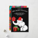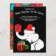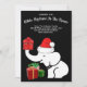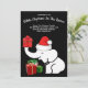 Vitt kort för elefantjulfamiljen Hälsning Helgdag med lite vit elefant med en gåva på näsan. Omgiven av gåvor. Julklapp mönster på baksidan. Anpassa detta med ditt meddelande. Redigera den om du vill ha fler ändringar.