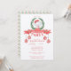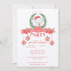 Den här söta vita julklappsinbjudan innehåller en vattenfärgselefant som håller på att ta sig ut från en julkrans. Mittpunkten i inbjudan innehåller alla detaljer om party i rött på en ljusvit bakgrund. Tidpunkten och ställe lyfts fram på grönt och röda ballonger. Baksidan av inbjudan har ett lodrät i mönster.