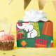 Papper med en vit elefant med en jultomtehatt och omsluten gåva mönster med grönt bakgrund. Det här stämmer överens med julfestens inbjudningar. Enkel att anpassa och anpassa.