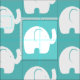 White Elephant Mönster Aqua Tyg