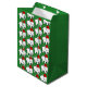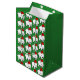 White Elephant with Santa Hat Design Gift Bag with your choice of background color. Perfect for White Elephant Gift Exchanges.