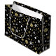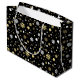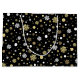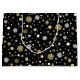 Contemporary vit och guld tittar snöflingor och polka dots mönster mot svart bakgrund. Modern men enkel, vanlig vismisk design för att passa in den roligten födelsedag, överraskning eller Julklapp med. Tillgänglig på märkre som omslagspapper och vävnadspapper, presentpapper, påsar och favärden, klistermärken och rosett band