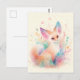 This enchanting design features an incredibly sweet and slender fennec fox shown standing gracefully in a dreamlike, minimalist meadow. Created as a high-quality digital illustration in a soft watercolor style, the fox has fuzzy white and cream plumage, with its iconic large ears beautifully tipped in pastel shades of blue, purple, and pink. Its large, almond-shaped dark eyes gaze thoughtfully toward the viewer, conveying a sense of quiet magic and gentle curiosity. The character is nestled among a sparse and airy arrangement of hand-painted pastel wildflowers, delicate pink butterfly silhouettes, and colorful paint splatters that drift through the clean, off-white background. The overall aesthetic is tranquil, sophisticated, and full of whimsical wonder, making it an exceptional choice for fans of minimalist animal art and magical desert creatures. This whimsical fennec fox postcard is a perfect choice for sending a "thinking of you" note or a dreamy greeting to a friend who finds joy in the quiet magic of artistic wildlife. You might choose to use this artistic card for a pastel-themed baby shower invitation or to celebrate a professional achievement with a touch of ethereal elegance for your colleagues. It also makes a beautiful decorative piece for a modern nursery wall or a stylish addition to a creative journal as a small token of whimsical beauty. This versatile design is also an excellent choice for a housewarming message, a graduation thank you note, or as a heartwarming way to share a message of joy for any situation or event.