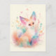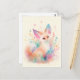 White Fennec Fox with Pastel Rainbow Ear Vykort