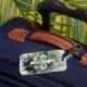 Ensidig med kort-plats Original collage design med vit lövande fleur-de-Lis.
