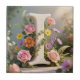 White Floral Garden Monogram Letter I Kakelplatta
