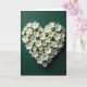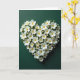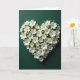This design shows a heart shape formed by many small white flowers, gathered closely together like a quiet promise between two close friends 💚. The blooms sit on a deep emerald-green background that makes the heart stand out clearly. Each flower has five soft petals with a golden-yellow center, and a few tiny buds peek out here and there, hinting at something gently growing. Soft, diffused light falls across the petals, creating tender shadows that give the heart a lifted, three-dimensional look. The overall scene feels calm and romantic, like a bouquet arranged with care for someone special ☘️. A short St. Patrick’s Day greeting appears near the top in white lettering, with a smaller line below it in pale gold. The heart of clustered flowers remains centered, glowing against the dark green field with crisp edges and delicate highlights.
