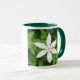 Anpassade Ringer mugg med vita blombilder och inspirationsindikator.