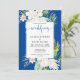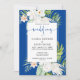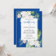 White Flowers on Blue Background Wedding Inbjudningar