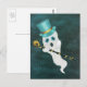 White Flytande Ghost i Himlar Top hat Skull Käpp Vykort