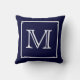 White Framed Blue Monogram American MoJo Pillow Kudde