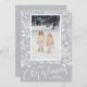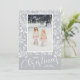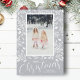 Vita blad, prickar och bär på en vacker bakgrund av grått i silver (eller färg för att matcha fotot) accentuerar ditt favoritfoto med namn och hälsning i chic vid grund. Välj Projektionsyta för högsta pappra och HD-kvalitet för bästa utskriftskvalitet.