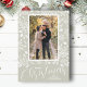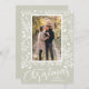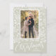 Vita löv, bär och prickar på en ljusskygg grönt (eller färg för att matcha fotot) accentuerar ditt favoritfoto med namn och hälsning i chic vid grund. Välj Projektionsyta för högsta pappra och HD-kvalitet för bästa utskriftskvalitet.