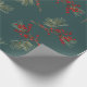 En elegant och en sofistikerad helgdag som omsluter pappert med vattenfärgat vitt gräs-grenar med rött ilex-bär på en djup grönt med diagonal räfflad bakgrund.