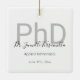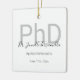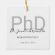 Ett PhD-prydnadsämne i studenten som är utmärkande för student namn, fält och studenten. Utskriften innehåller namn i ett handskriftsteckensnitt och en vit, svart och grått-design. Lägg bara till student information, lägg till den här prydnaden i din vagn och grattisar på den här viktiga milstolpen! Vitt Grått Student Namn PhD Studenten keramisk prydnadsdagsanläggning för helgdagar | ©Melissa Patton - Designer<i>Photography © Storytree Studios, Stanford, CA</i>