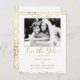 White & Guld Confetti Photo Bröllop spara datum Meddelande Vykort