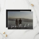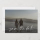 Fin kalligrafi med vita bokstäver som täcker över fotot sparar datumkortet. Det här är en vacker typografi på en fullt som utfaller ett kortfoto med vita bokstäver. Det innehåller en övertäckning av ljusövertoning om fotot behöver det bakom texten. Du kan behålla eller ta bort den mjuka övertoningen om du inte behöver den.
