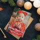 Dubblan satte personligen på julkortet med tre foton, ett på omslaget och två på baksidan. Traditionellt jullkort med foto som täcker kortet och God jul och gott nytt år i vitt brev med hjärta och grå delare.