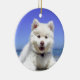 White Husky Puppy med Blue Öga Julgransprydnad Keramik