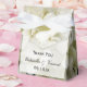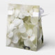 Anpassa söt White Hydrangea Blommigt Wedding Favor Box med det personliga namnen av briden och brudgummen och ceremonin i giftermål och fyll med party favors eller små gåvor till gästerna som deltar i ditt trädgårdstema möhippa eller i giftermål. I de här eleganterna finns det ett foto med blommigt av en vit blommar av vattenblommor. Perfekt för en sommarträdgårdsfest eller bröllopsmottagning i party eller möhippa.