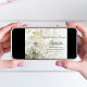 Ange en elegant för din kommande ceremoni och mottagning i party giftermål i trädgården med söt White Hydrangea Bröllop spara datum. Den här anpassningsbarna botaniska bröllop-behållan med datumangivelsen innehåller ett foto med en närliggande blommigt av vita blommar av vattenblommor. Finns som en utskriven inbjudan att skicka eller som en digital nedladdning för att enkelt kunna dela digitalt online.
