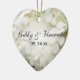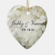 Anpassa den vackra Hjärtformade prydnaden i Vita Hydrangea Flowers Bröllop med den personliga namnen av ceremonin för bruden och brudgummen och giftermål. Den här elegantens anpassningsbar för illamående prydnadsföremål har ett foto av en vit blommigt av en vit blommar av vattenblomma på båda sidor.