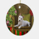 Den vita Jacken Russell Terrier sitter på en stol och vaktar Julgran och Julklapp hundälskare helgdag vid jul