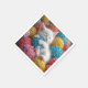 En flytande vit kattunge som fredligt sover omgiven av färglöst garn bollar