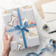 Denna förtjusande papper för julklapp i Vita Labrador är perfekt för alla julklappar. En mjuk grått-bakgrund med en vacker vit Labrador sitta i en julhatt och en båge, med hela hund ben.