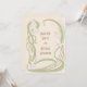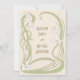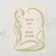 En bröllopsinbjudan med en art nouveau-inspirerad design, med vita liljor med grönt lövs, som bildar ett organiskt flytande ram på en beige bakgrund. Texten på båda sidor kan anpassas.
