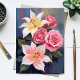 White Lillies Pink Rose Bouquet Watercolor Floral Painted Card